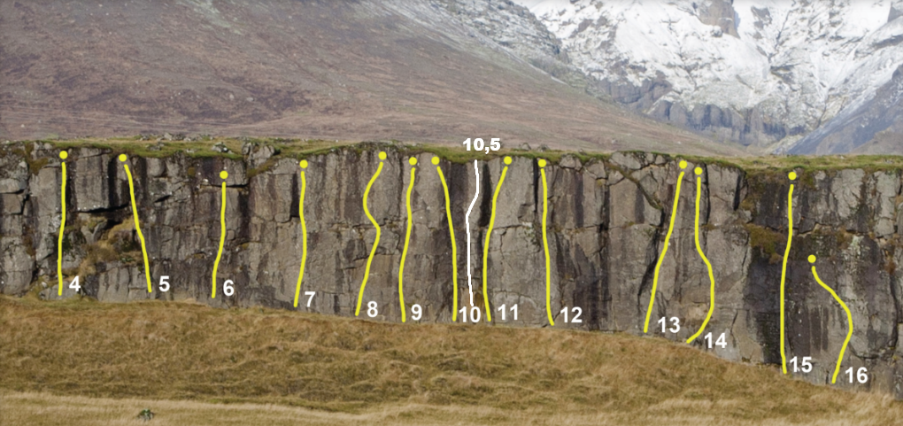 Leiðin er rétt hægra megin við Smala.Leiðin fer rétt rúmlega hálfa leið upp vegginn og mér fanst ekki ástæða til að teygja hana alla leið, það eru aðrar línur við hliðina á þar sem það væri lógískara.