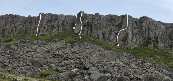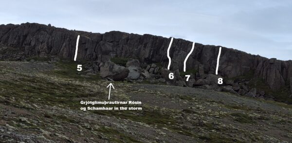 Eingus hefur verið klifruð ein leið á steinum en hann bíður alveg uppá 3-4 í viðbót.
