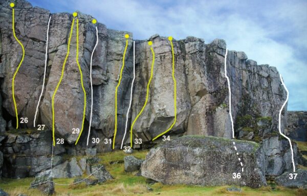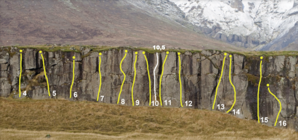 Hér hefur verið eingus klifrað grótglímu en klettarnir bjóða alveg uppá sport eða dótaklifur. Grítglímur steinar eru 3 sem komið er.